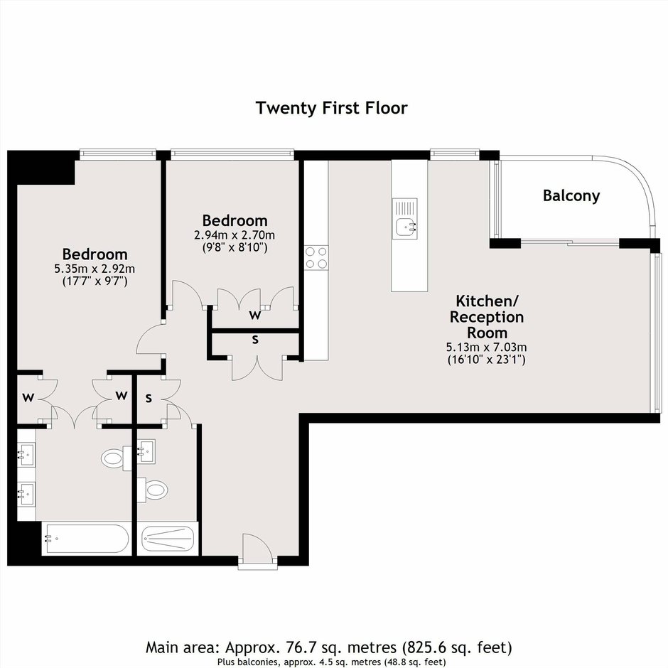 A two double bedroom, two bathroom apartment in Principal Tower with unobstructed west-facing views. The apartment comprises two large double bedrooms, one with en-suit, a family bathroom and an open plan kitchen/living room that leads onto the private balcony.