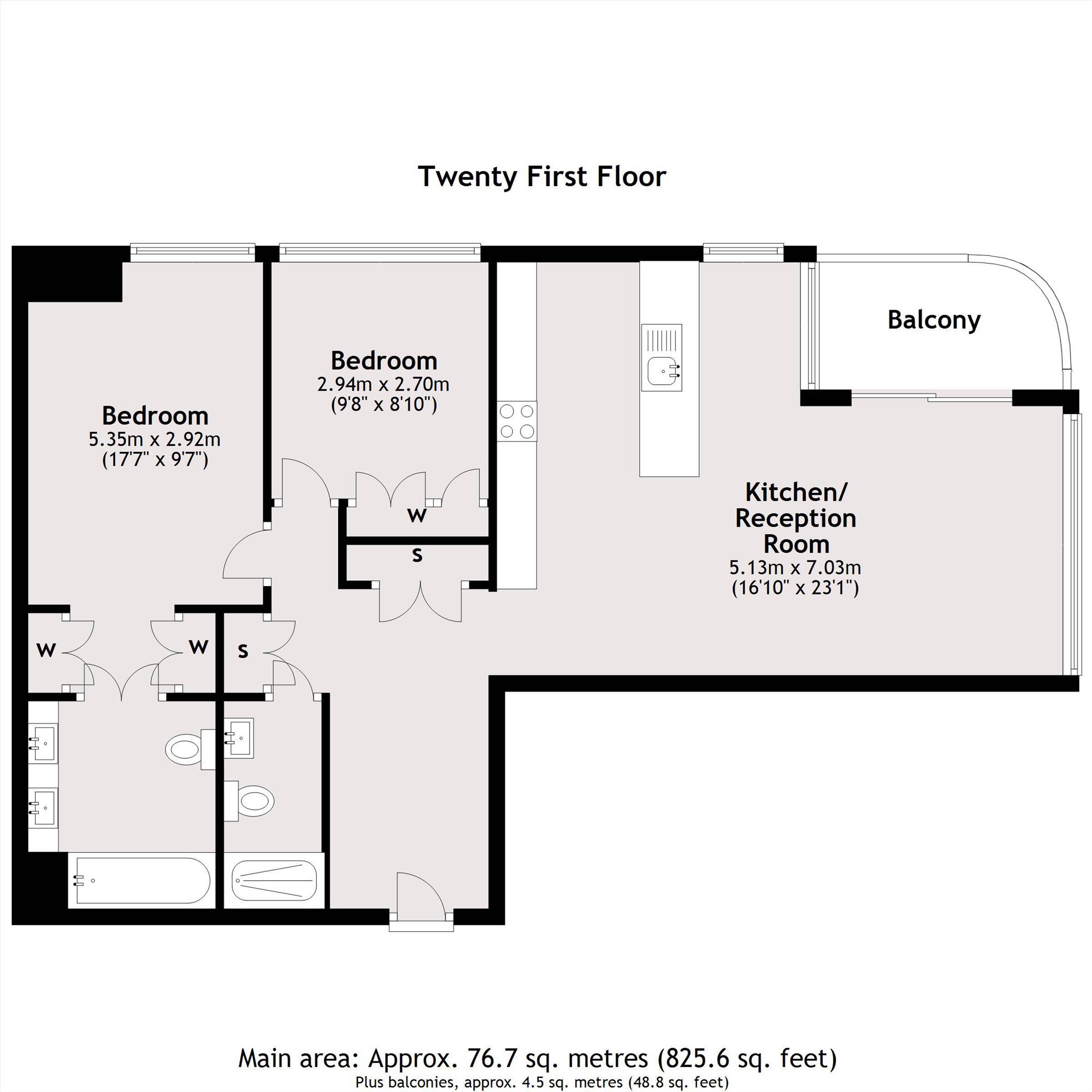 A two double bedroom, two bathroom apartment in Principal Tower with unobstructed west-facing views. The apartment comprises two large double bedrooms, one with en-suit, a family bathroom and an open plan kitchen/living room that leads onto the private balcony.Principle Tower is one of the area's most sought-after residential developments, in part due to features including the 24-hour concierge, residents' gym, pool, sauna and steam room, as well as communal meeting areas.
