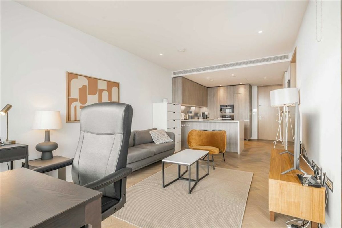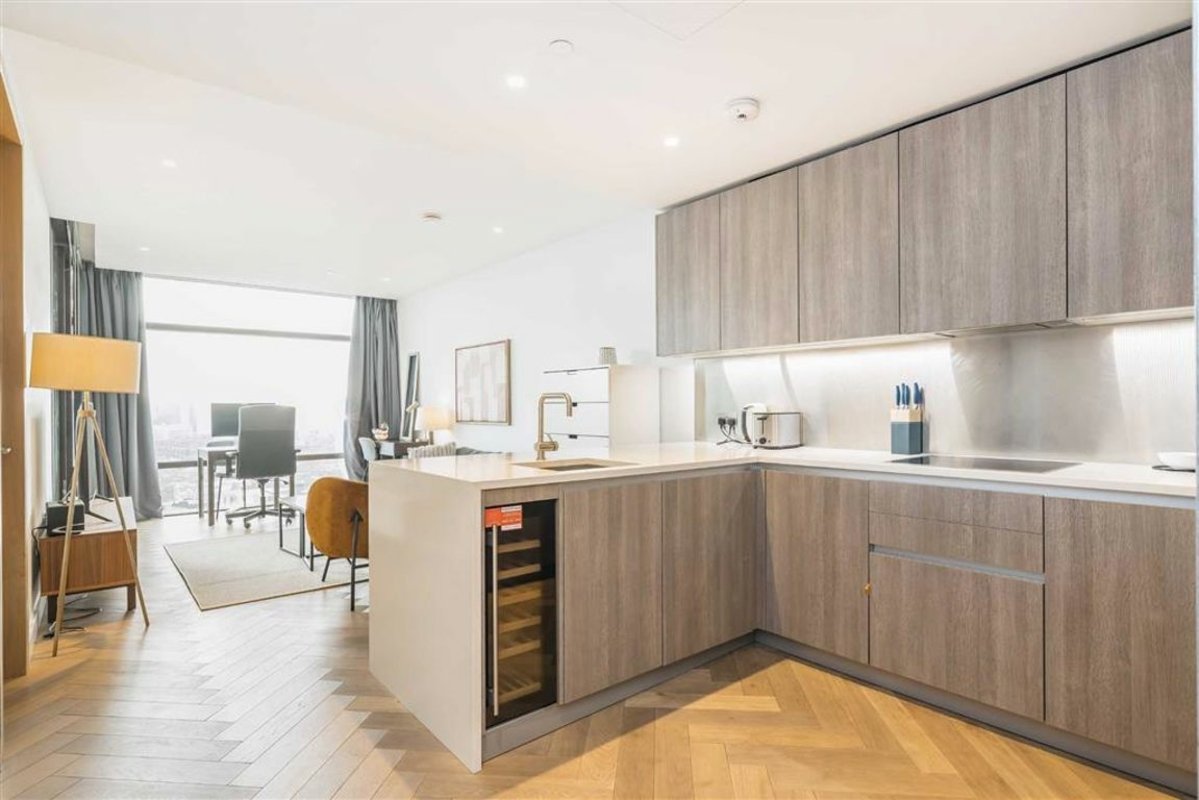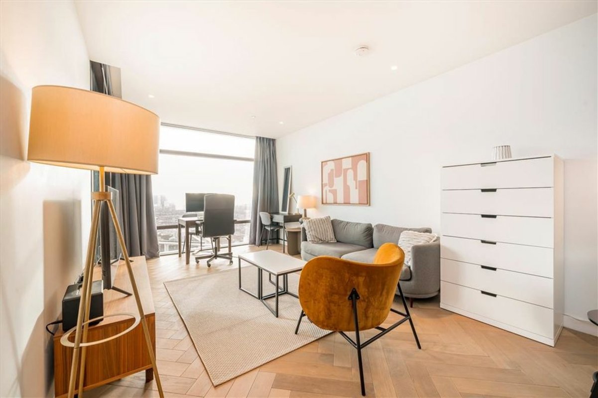A one bedroom apartment in Principal Tower with unobstructed east-facing views. The apartment comprises a spacious open plan living room with a high spec fully integrated kitchen, this area leads out onto the private balcony with far reaching views. The apartments double bedroom has slick built in storage and an en-suite. The apartment has floor to ceiling windows throughout allowing for a generous amount of natural light. Principle Tower is one of the area's most sought-after residential developments, in part due to features including the 24-hour concierge, residents' gym, pool, sauna and steam room, as well as communal meeting areas.