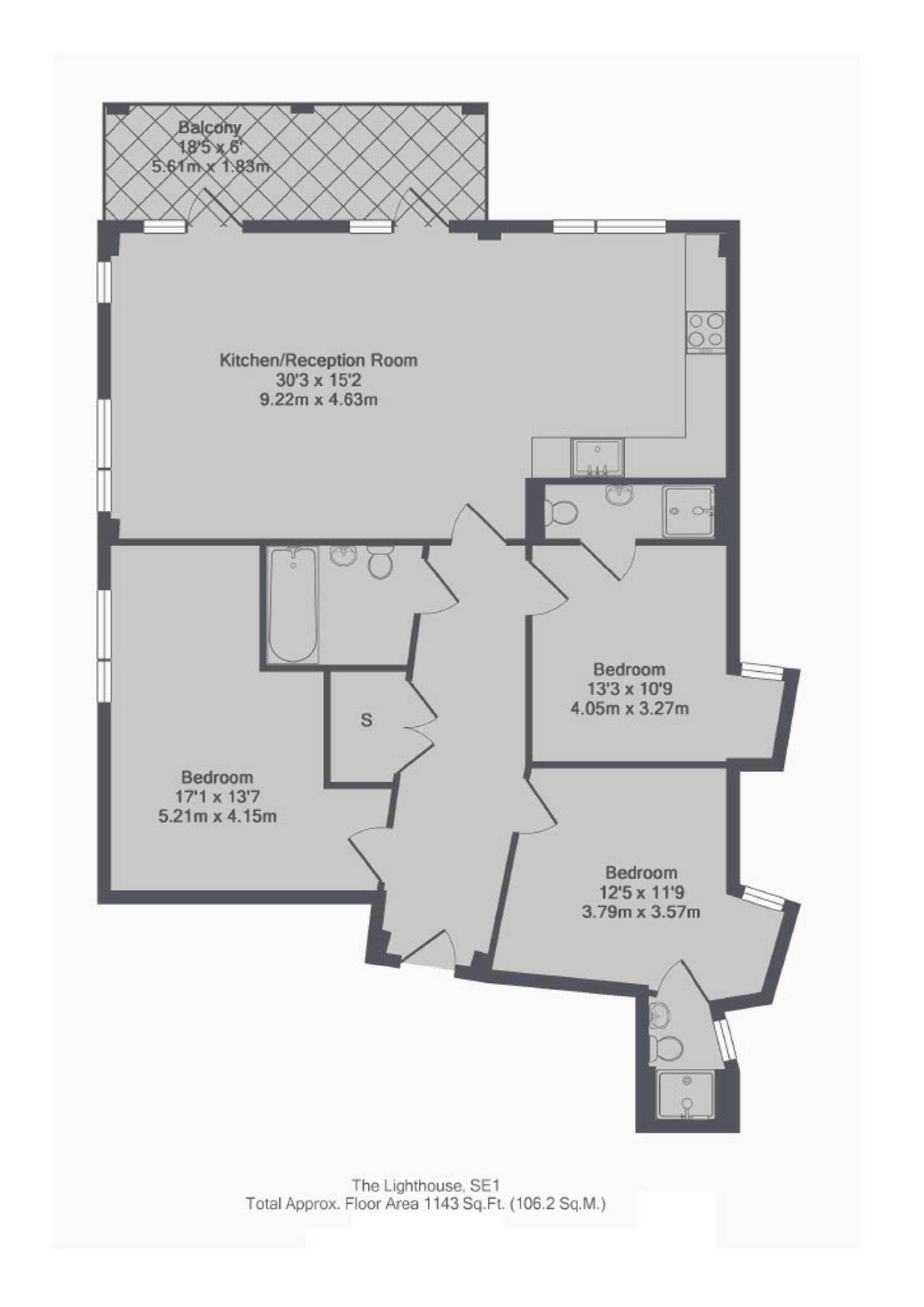 An incredibly spacious and high spec, lateral apartment in a boutique low-rise development with three spacious double bedrooms, three bathrooms, a very generous open plan living room and kitchen, plus a large private balcony.