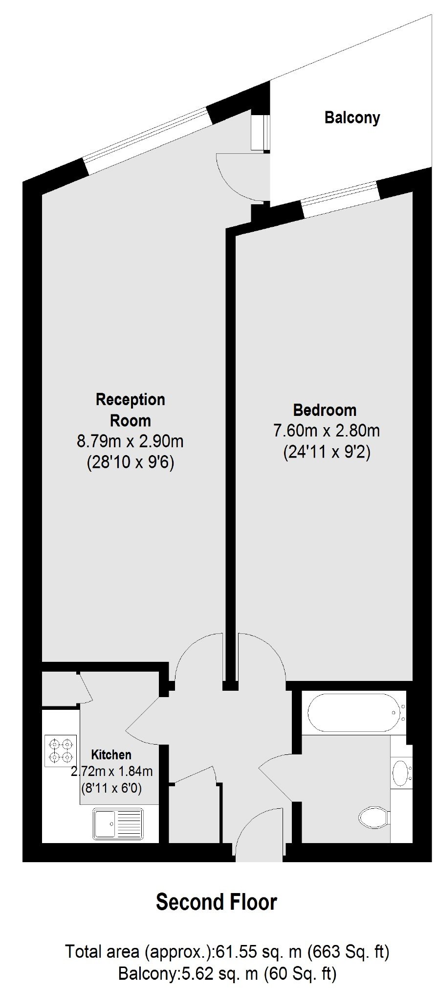 OIEO £400,000 - An over 660 sq ft one bedroom apartment, with a large living room and separate modern kitchen, a smart three piece bathroom, generous double bedroom and a private balcony. Chain Free Sale.