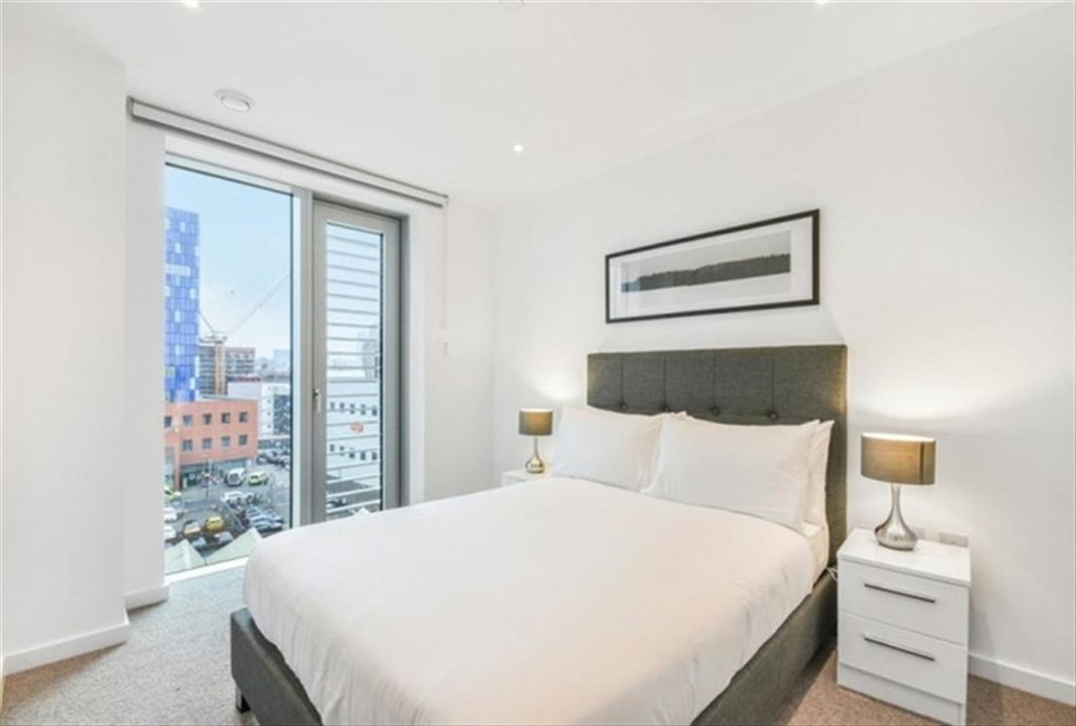 Two bedroom, two bathroom apartment set on the 6th floor of this popular modern development. The apartment has a large and bright open plan living room with fully integrated kitchen, this area leads out to the apartments spacious terrace. The property has two double bedrooms with in-built storage and the principle bedroom is en-suite. The hallway has a good amount of additional storage space and the family bathroom. The development gives access to a residents only gym and 24hr concierge facilities.