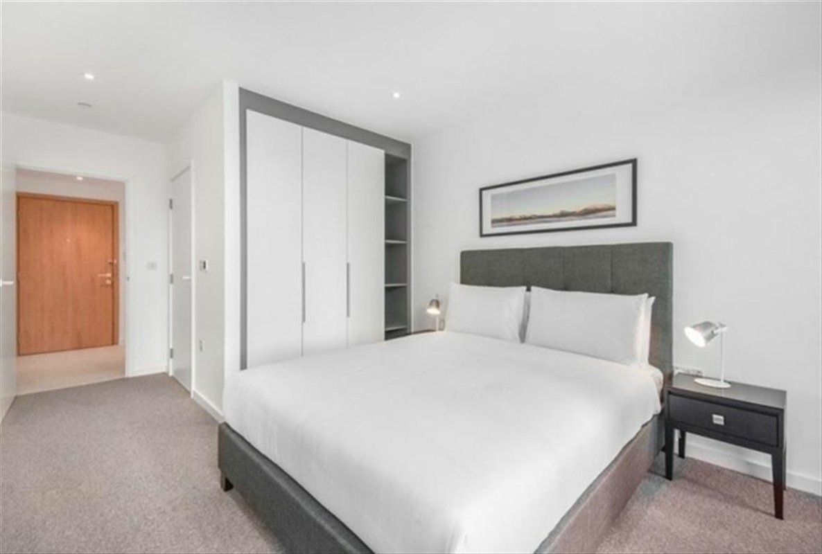Two bedroom, two bathroom apartment set on the 4th floor of this popular modern development. The apartment has a large and bright open plan living room with fully integrated kitchen, this area leads out to the apartments spacious terrace. The property has two double bedrooms with in-built storage and the principle bedroom is en-suite. The hallway has a good amount of additional storage space and the family bathroom. The development gives access to a residents only gym and 24hr concierge facilities.