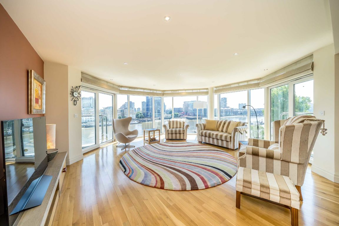 An exceptional, three double bedroom apartment within this sought after riverside development offering breathtaking views of the river and London beyond.
