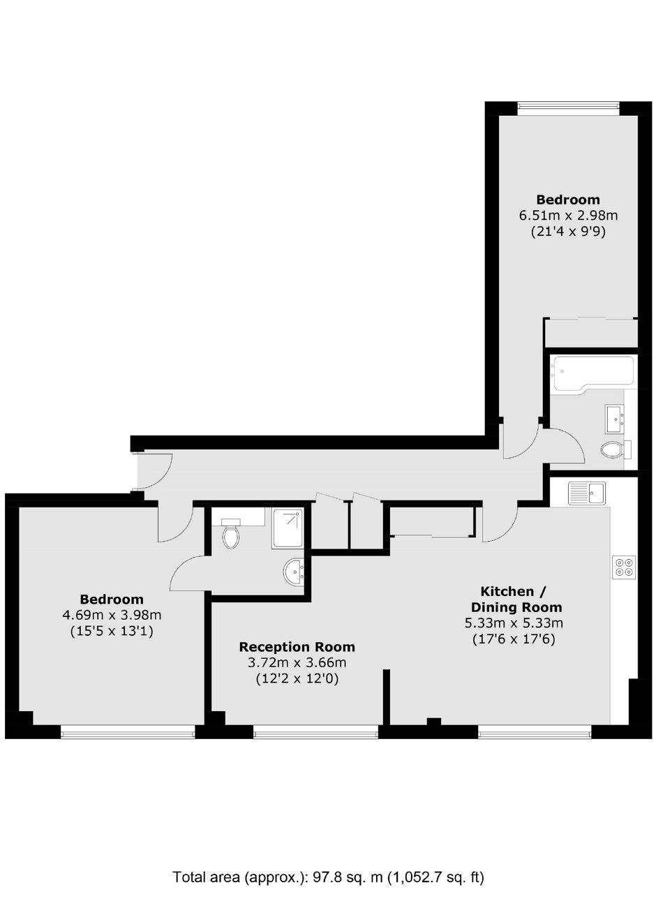 Situated in a stunning period building, this two double bedroom flat is immaculately presented throughout and boasts two modern bathrooms, a large open plan kitchen living space and ample storage.