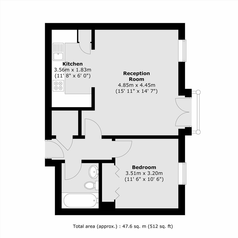 A highly attractive and immaculately presented south-facing apartment, offering a spacious living room and a contemporary kitchen. The property features a generous double bedroom, ample storage, and a modern three-piece bathroom.