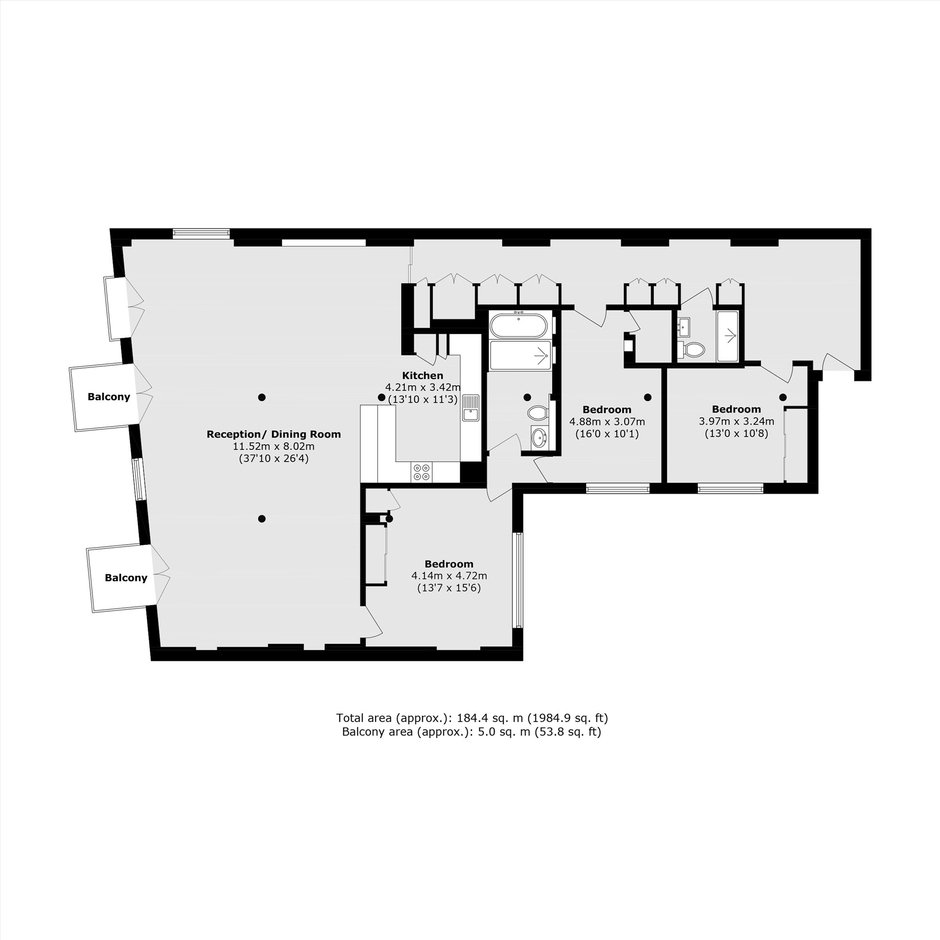 A fully refurbished, river-fronted, three double bedroom home extending to approximately 2,000 sq ft. The property offers an open-plan reception room with access to two private balconies, wooden flooring throughout, contemporary bathrooms, secure allocated parking and a concierge service.