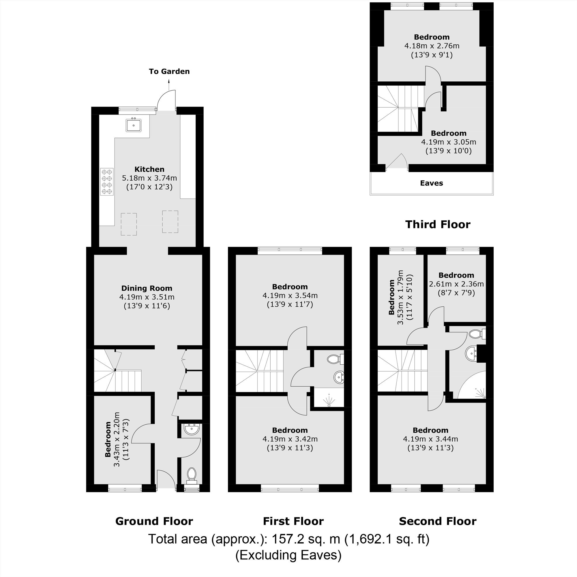 A spacious six bedroom freehold house arranged over four floors with a driveway in a sought after location. The ground floor gives access to a downstairs home office, large living area with space to dine and a significant extension which has the modern kitchen with fully integrated appliances, this area leads out to the properties good size garden. The first floor consists of two double bedrooms, including the principle room, as well as a bathroom. The second floor has two single rooms, a furthe...