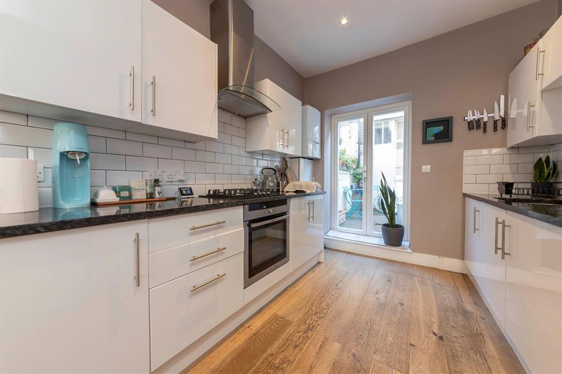 A three story Victorian terraced house that has been transformed into a light and spacious family home with four double bedrooms, two bathrooms, open plan living space and a private courtyard.On the ground floor there is an open plan living and dining area with two large sash windows and stylish galley kitchen which comes with double doors leading out onto the courtyard garden.