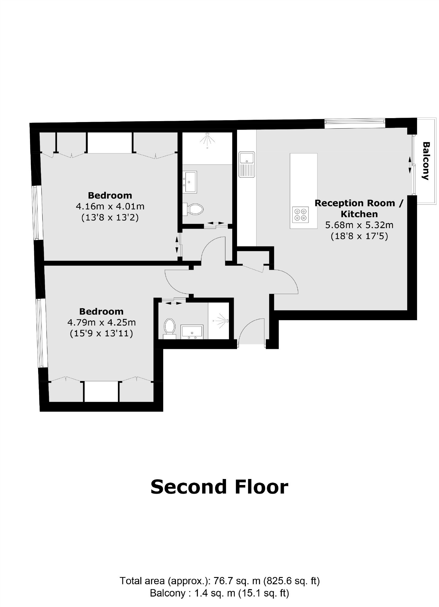 A stunning 2-bedroom, 2-bathroom apartment on the first floor of a modern industrial-style development. Spanning 860 sq ft, it features lift access, two private balconies, lime-washed wooden floors, and large triple-glazed windows flooding the space with natural light. The open-plan kitchen includes bespoke Neolith surfaces and an island with extractor hood, while bathrooms are finished with premium fittings. Both bedrooms have fitted wardrobes, built-in LG TVs, underfloor heating, and integrate...