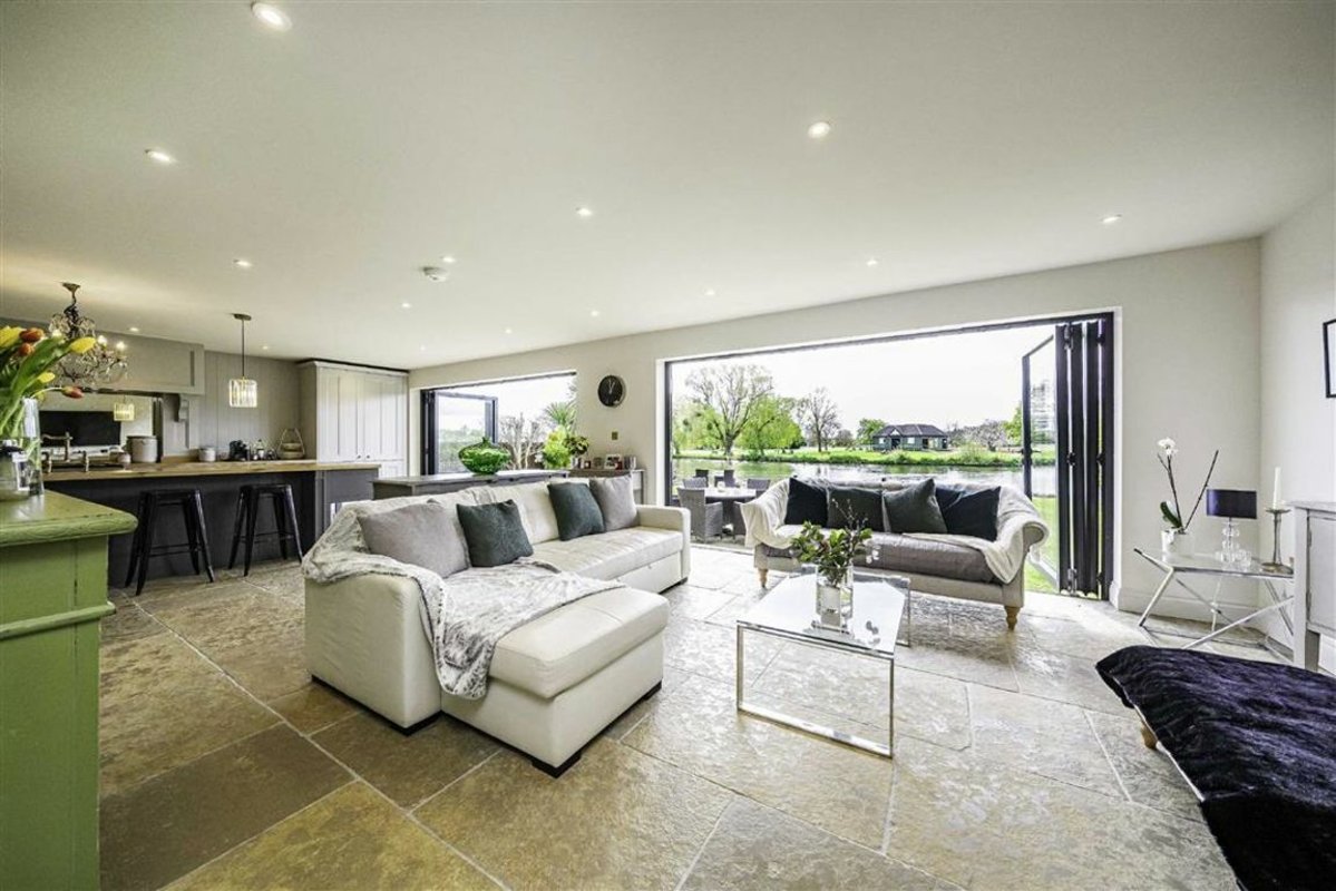 A stunning, newly refurbished family home with stylish open plan interiors on this picturesque stretch of The Thames opposite Runnymede with a 55ft private mooring.