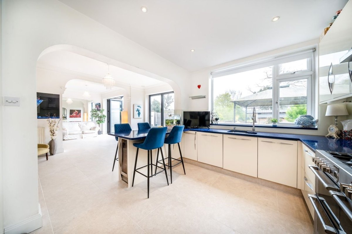 Set across three floors, the property offers five spacious bedrooms, a wrap-around kitchen and dining area, a separate utility room, a front-facing family reception room, and off-street parking for several vehicles.