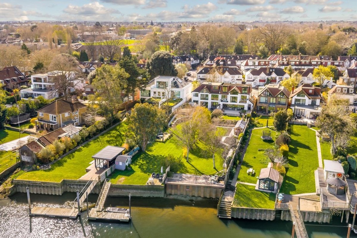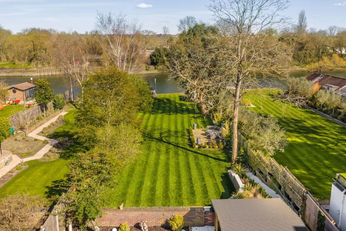 This exceptional semi-detached family home features a generous garden that backs directly onto the River Thames, with private mooring for two boats.