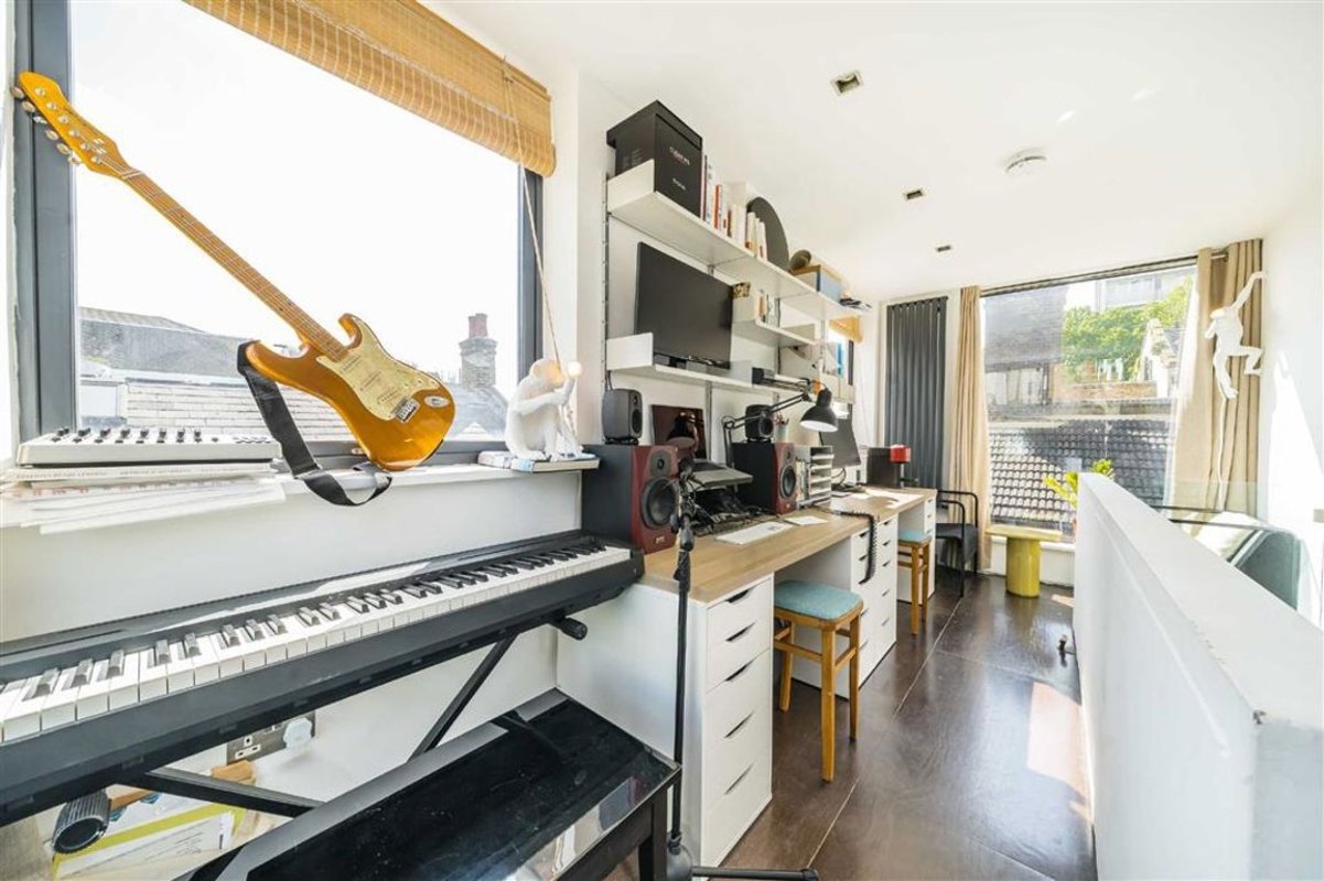 A modern two double bedroom three storey freehold house located down a popular cobbled terrace, Voss Street. This property has two double bedrooms on the ground floor with a family bathroom located on this floor too. The middle floor has an semi-open plan living area with a floor to ceiling window with ample space to dine and a recently modernised kitchen with in built appliances. The top floor has a bright home office/studio area and leads out onto the property's private terrace.
