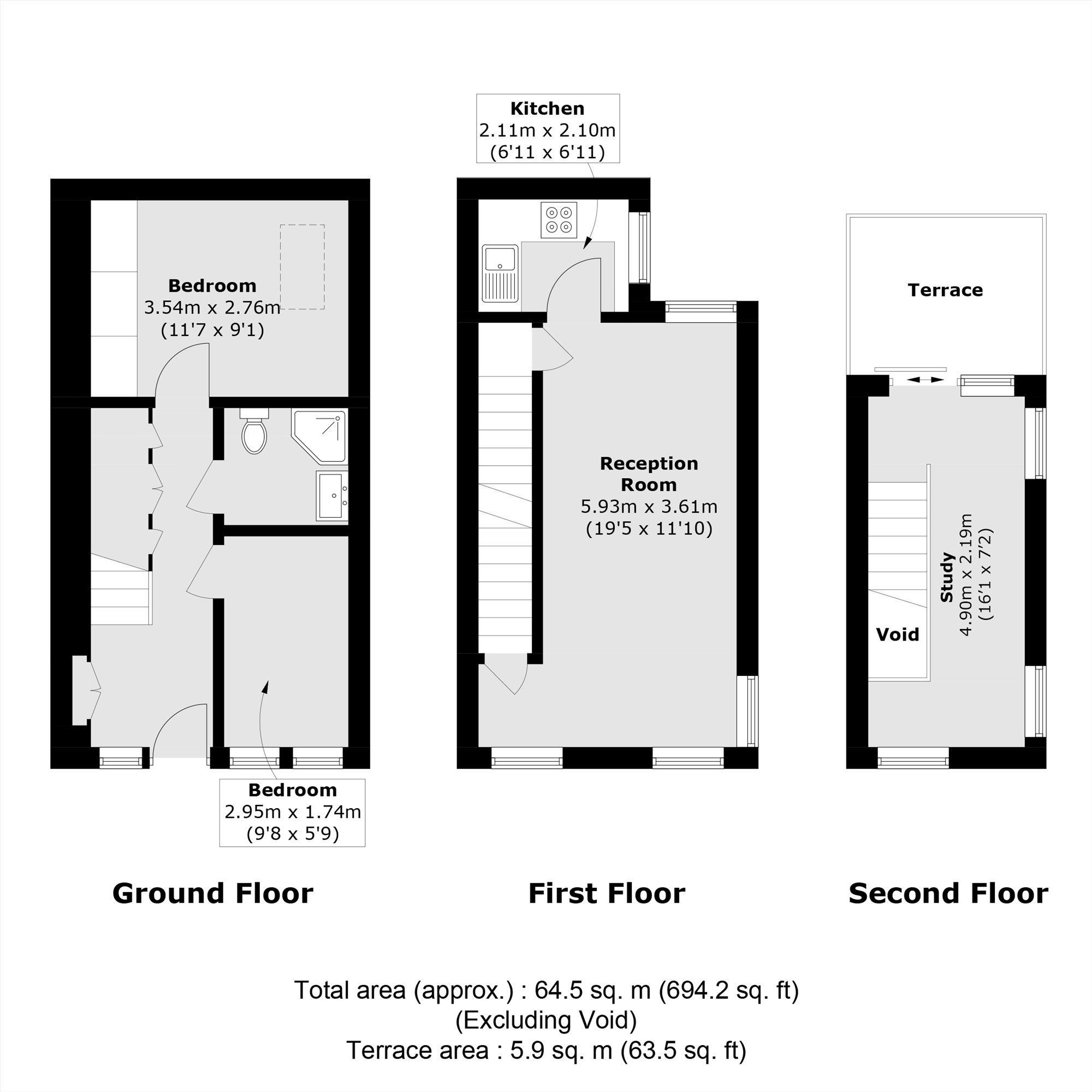 A modern two double bedroom three storey freehold house located down a popular cobbled terrace, Voss Street. This property has two double bedrooms on the ground floor with a family bathroom located on this floor too. The middle floor has an semi-open plan living area with a floor to ceiling window with ample space to dine and a recently modernised kitchen with in built appliances. The top floor has a bright home office/studio area and leads out onto the property's private terrace.