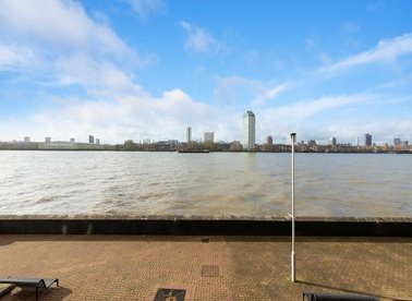 A first floor flat offering a large reception room with separate kitchen, two double bedrooms with built in wardrobes, separate study space, allocated parking and spectacular river views.