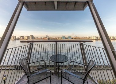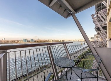 A two bedroom property in Free Trade Wharf. The property has a large living room leading to a balcony with river views, a separate kitchen, two double bedrooms, two bathrooms, wood floors throughout and includes underground parking.