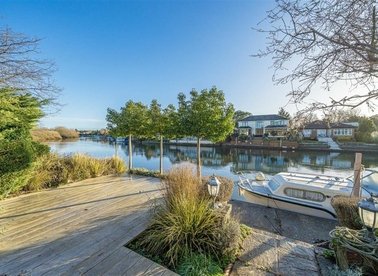 A beautiful family home set within picturesque, landscaped gardens overlooking The Thames incorporating a 'Mark Wilkinson' kitchen and 'Hampton' conservatory with a private 45ft mooring.
